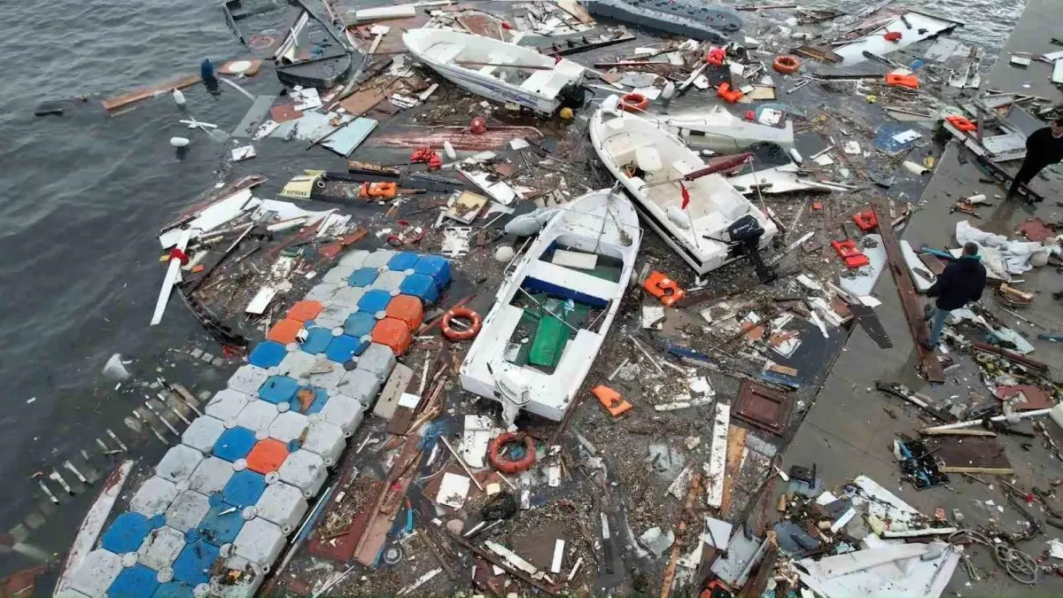 Fırtına sonrası sahil kesiminde meydana gelen tahribat ve teknelerde oluşan ciddi hasar havadan görüntülendi. Dronla çekilen videolarda, devrilen tekneler, parçalanan gövdeler ve sahil boyunca yayılan hasarın boyutu açıkça görülebiliyor. – İSTANBUL