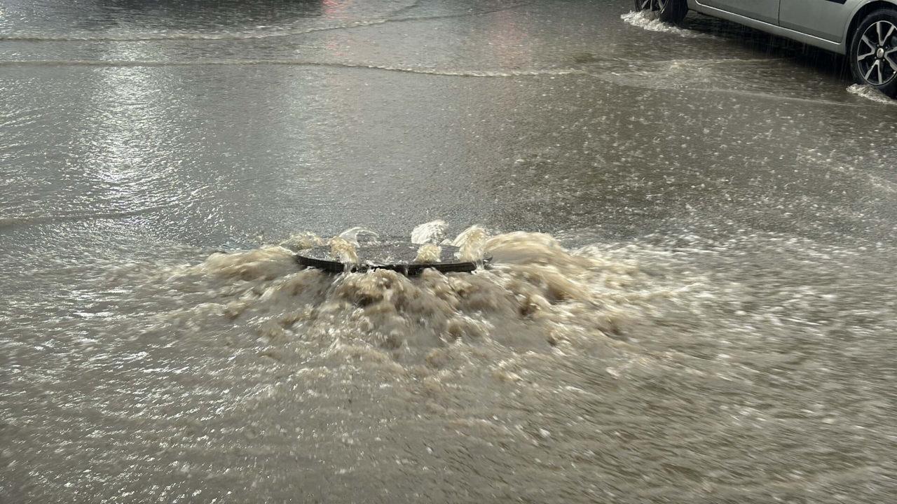 Ünlü tatil beldesinde sağanak kabusu! Tıkanan mazgallar taştı, trafik kilitlendi